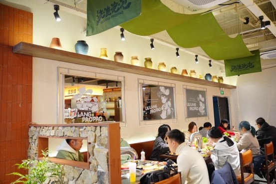 流浪泡泡杭州3.0门店在场景设计上精准捕捉城市“精致休闲”的气质,以山系自然美学重构空间——深棕原木为基底,搭配暖色灯光、岩石墙面的自然质感,绿植形成天然区隔,还设有露营风打卡区,整体氛围更像一家精品餐厅,契合年轻客群的社交需求。