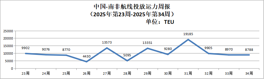 2025年第23周-第34周《中国主要外贸航线运力投放周报》正式发布,包括美西航线、美东航线、中南美航线、欧洲航线、地中海航线、日韩航线、东南亚航线、南非航线等13条全球主要外贸航线。