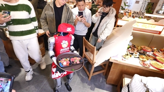 与此同时,来自杭州本土企业宇树科技的人形机器人以“杭州限定店员”身份入职门店,不仅承担迎宾、送餐功能,还会定时上演舞蹈表演,更换上白娘子、许仙造型与IP人偶组队巡游,科技感与杭州传统文化的碰撞引发百万级传播。