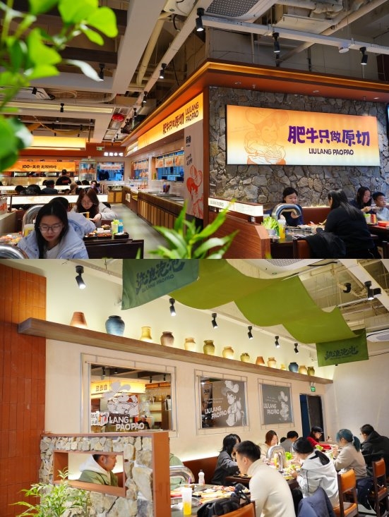 在场景设计上,品牌精准捕捉杭州“精致休闲”的城市基因,以山系自然美学重构空间——深棕原木基底、岩石纹理墙面、清新绿植点缀,搭配露营风打卡区,契合年轻客群“用餐即打卡”的社交需求。
